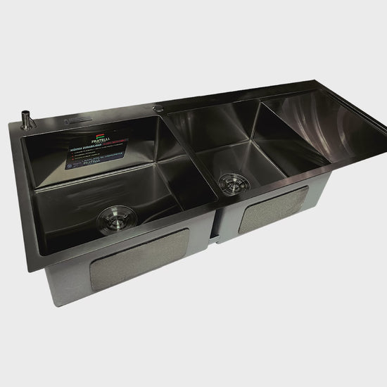 Lavadero Acero Inox. P/Marmol Doble Poza C/Porta cuchillo Black 120X50X23CM - Fratelli Signature