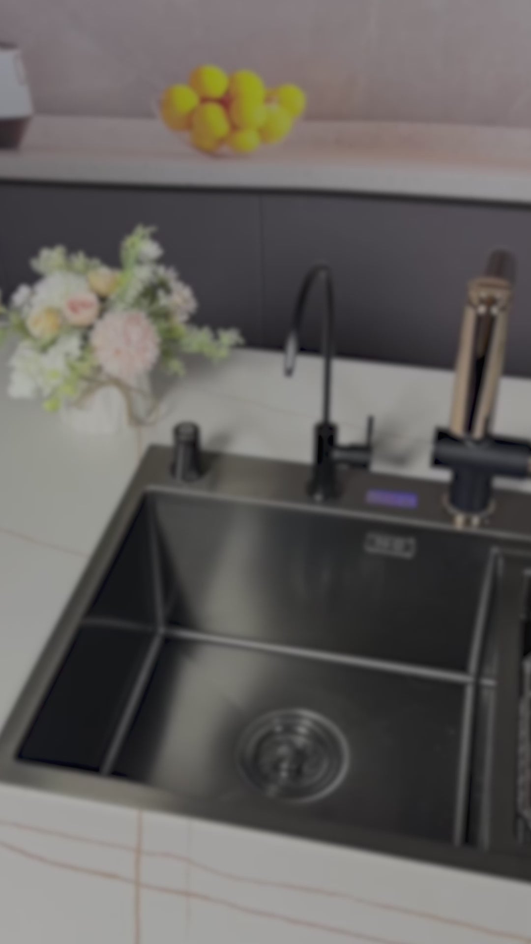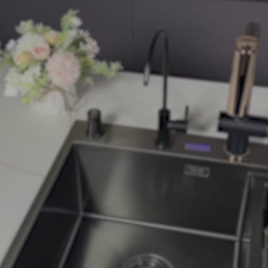 Lavadero Inteligente Bioshield C/Funcion Hydro Purificacion Nano Black De Acero Inox.304 C/Mezcladora 82x46x22cm - Fratelli Signature