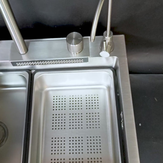 ML-7545S -Lavadero Multifuncional Milos De Acero Inox. 304 Satinado C/Mezcladora +Filtro De Agua (4 Funciones) 75X45X23 Cm -Fratelli Premium