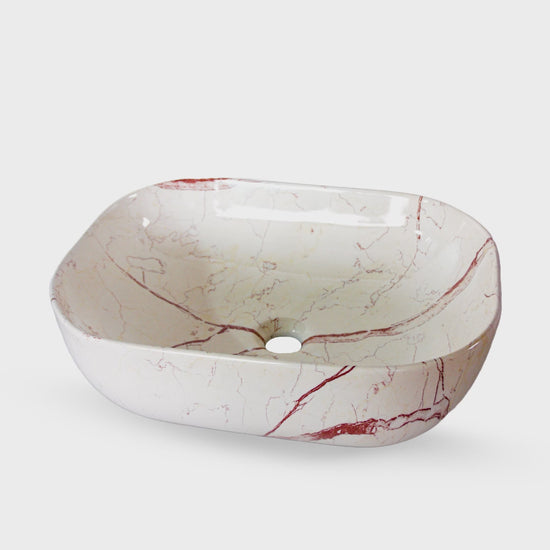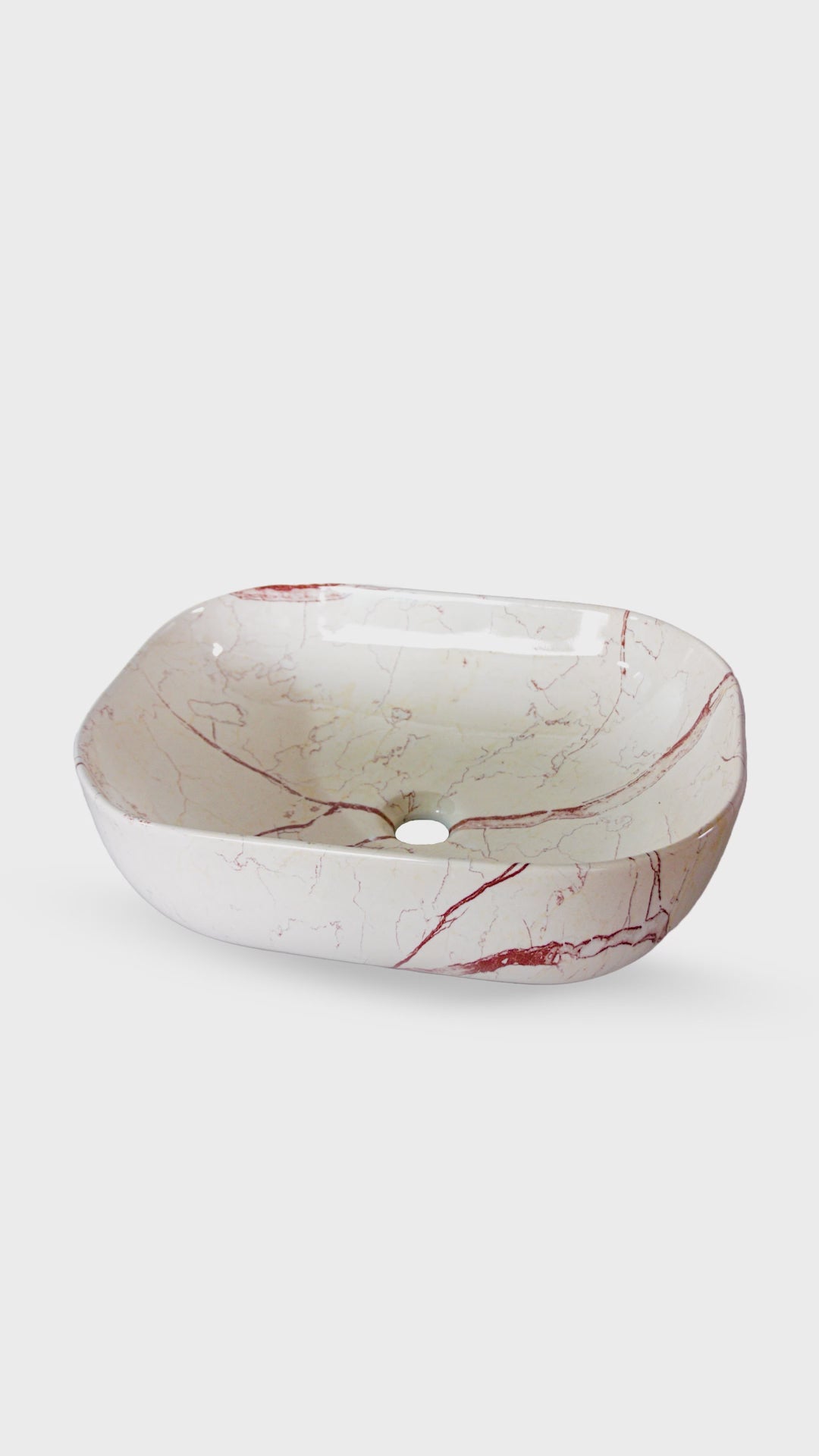 Cuenco Loza (151-7) Mod. Rectangular Marmoleado Beige C/Rojo 50X40X14-Fratelli