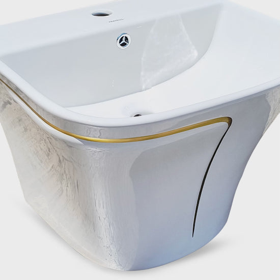 Lavatorio Semipedestal Minimalista Blanco C/Dorado 866Gl (49.5X44X39) - Fratelli