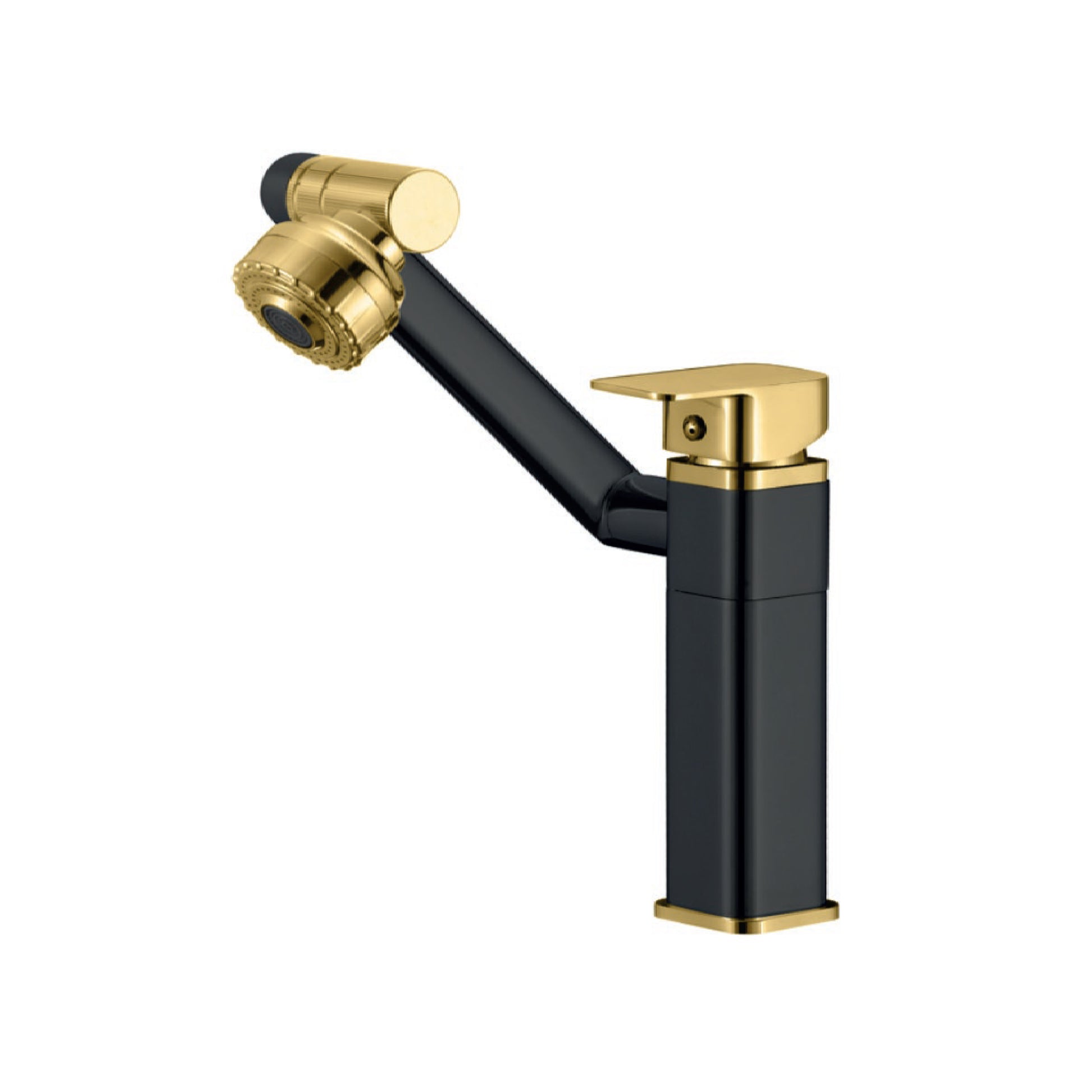 Mezcladora Giratoria P/Lavatorio NRVA C/2 Funciones - Black&Gold - Bronce - Fratelli