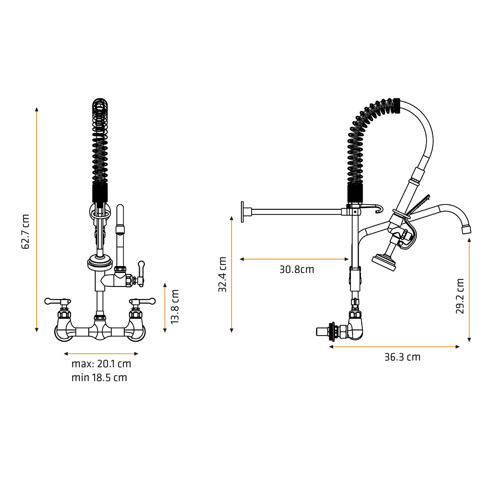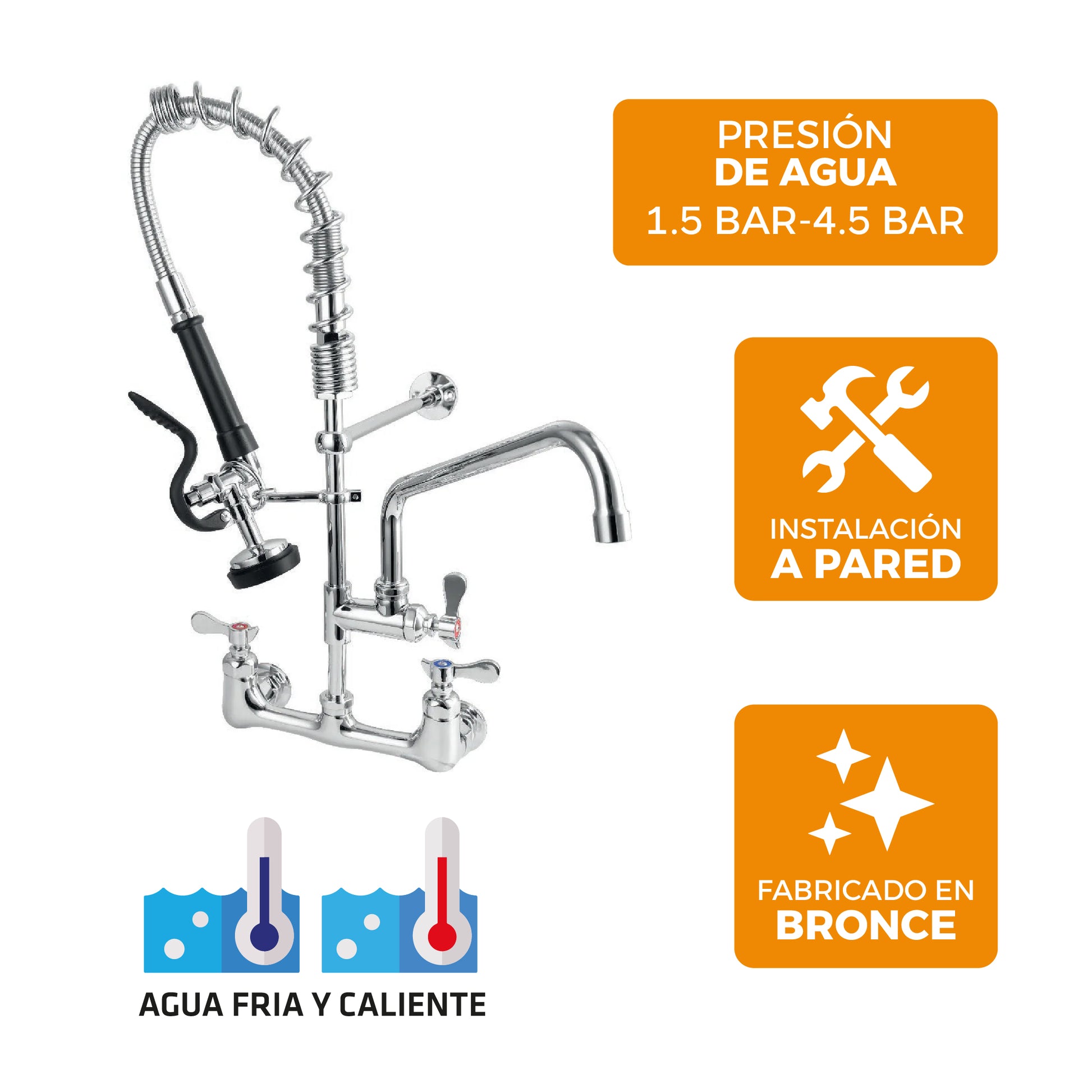Mezcladora Industrial P/Cocina Cuisine con Rociador de 25 Pul. de altura a la pared Bronce - Fratelli Premium