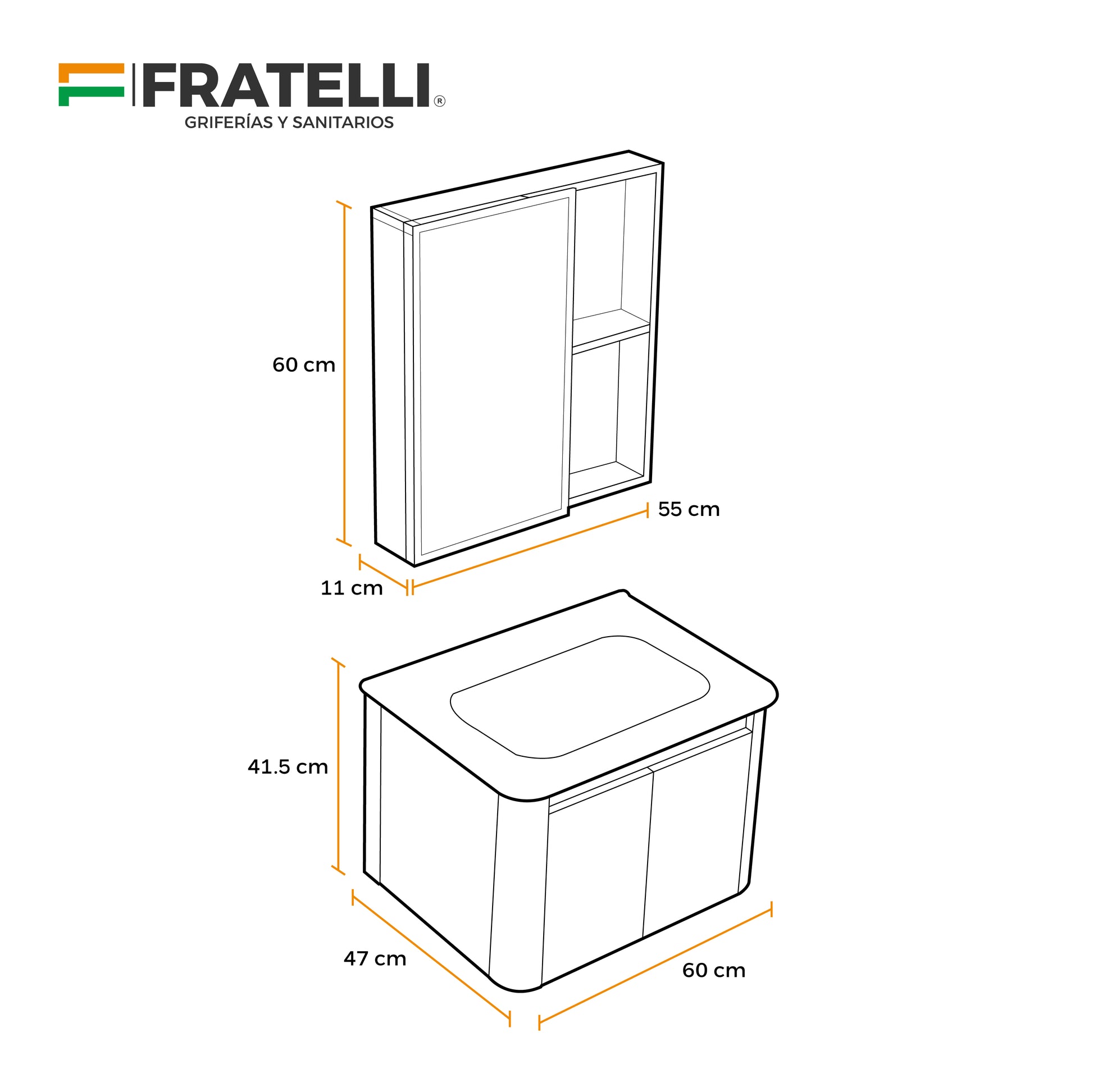 Mueble De Baño + Espejo De Aluminio Bs803-60 - Fratelli