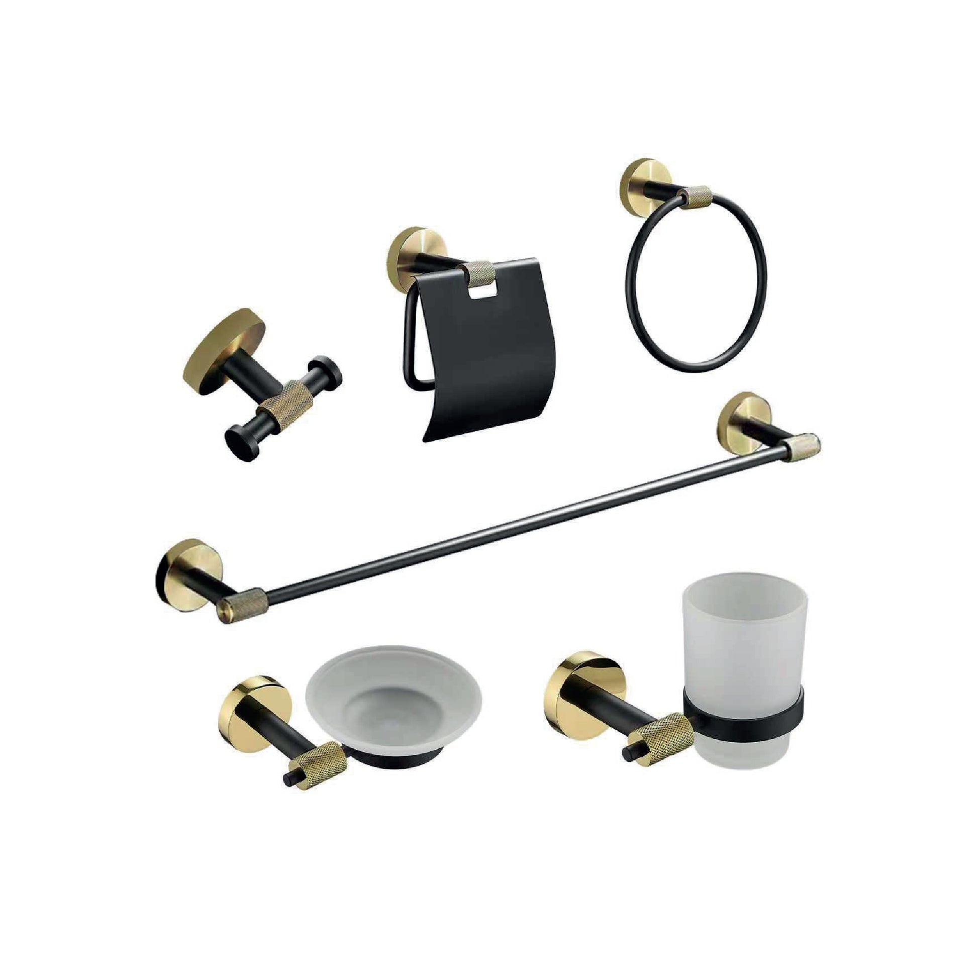 SET P/BAÑO 6 PZAS BASE CIRCULAR CAIRO -BLACK&GOLD -FRATELLI